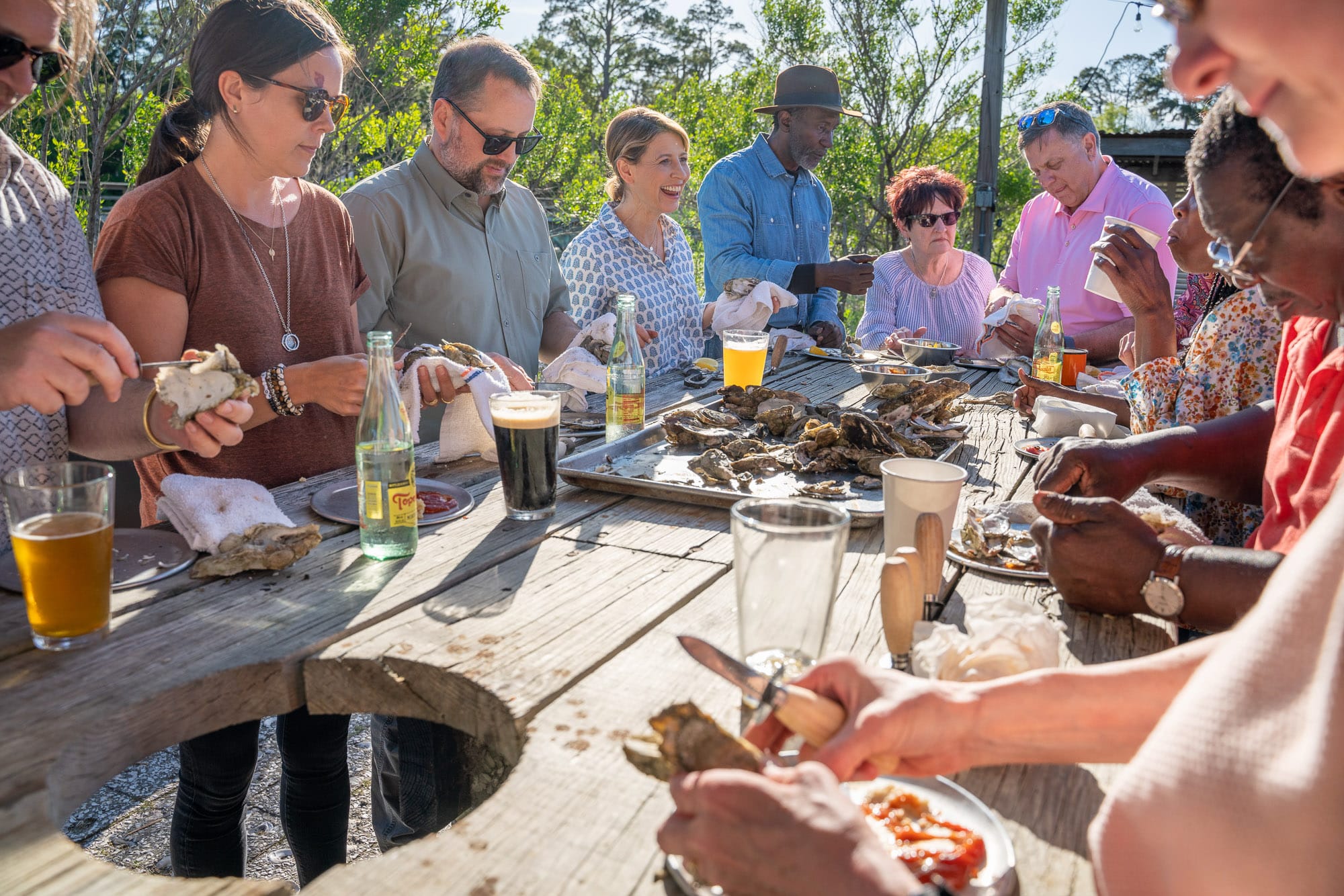 There’s nothing quite as delicious as an oyster roast! I first met up with artist and blacksmith, Gilbert Walker to learn about his oyster shuckers made from railroad spikes. We then met up with a few of the people I met during this trip for a good old-fashioned oyster roast at The Wyld Dock Bar where I tried Gilbert’s creation out for myself. This waterside seafood restaurant uses local, seasonal ingredients for a truly delicious but laid-back dining experience.